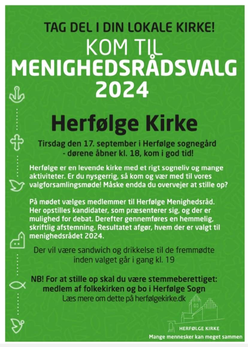 Menighedsrådsvalgene i Danmark foregår ved valgforsamlinger – også i Herfølge Sogn, hvor der er valg den den 17. september 2024.
