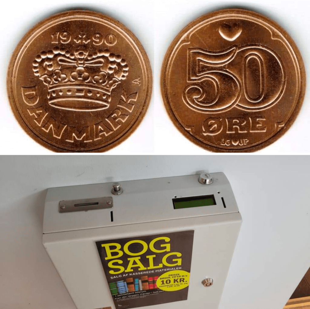 Aflever i den betjente åbningstid på biblo eller i møntkassen på væggen. TAK!