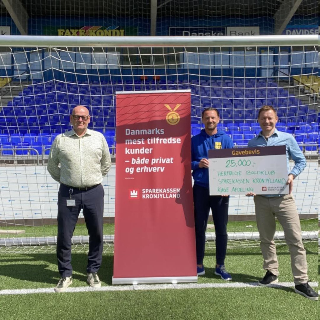 Herfølge Boldklub har netop modtaget en flot donation på 25.000 kr. fra klubbens samarbejdspartner Sparkassen Kronjylland Køge og Sparkassen Kronjyllands Gavefond 🤩.