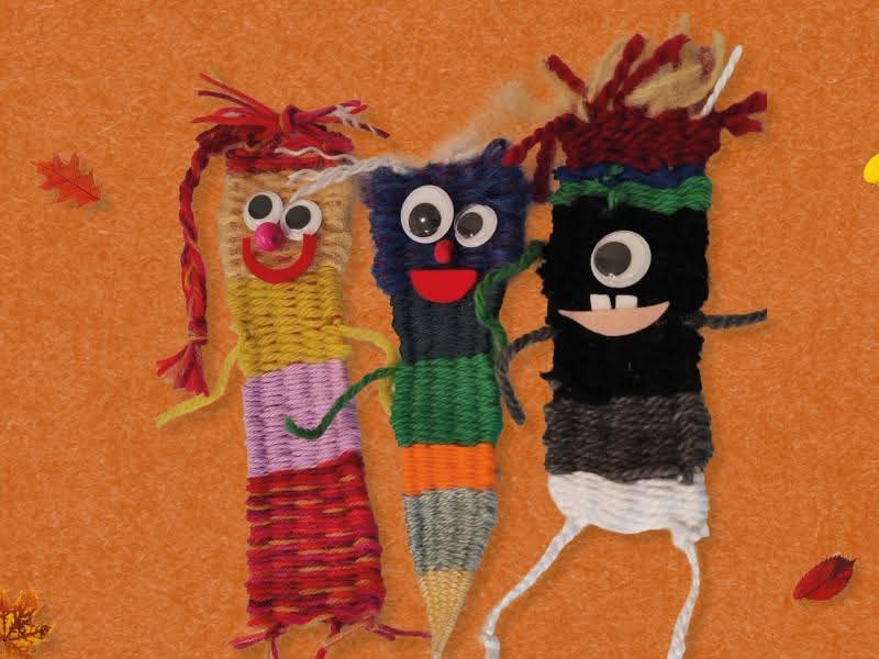 🧶 Med garn i alle regnbuens farver kan du skabe fine væverier. Vil du lave et sejt monster, et bogmærke eller en sjov halskæde?