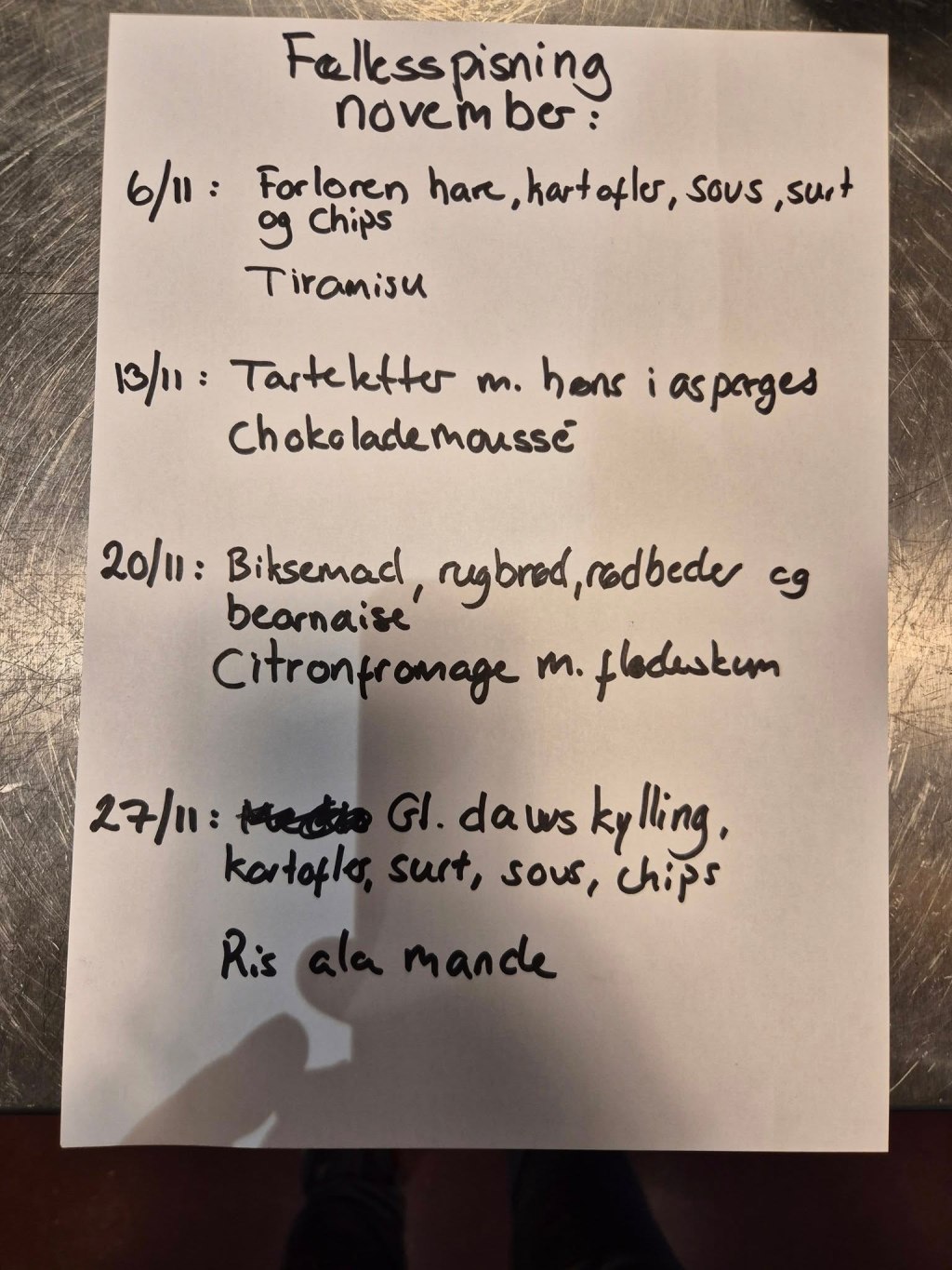 Så blev menuen for Novembers fællesspisninger klar, og I kan godt glæde jer! Klassikere og publikumsfavoritter skal følge vores sidste tid hernede.