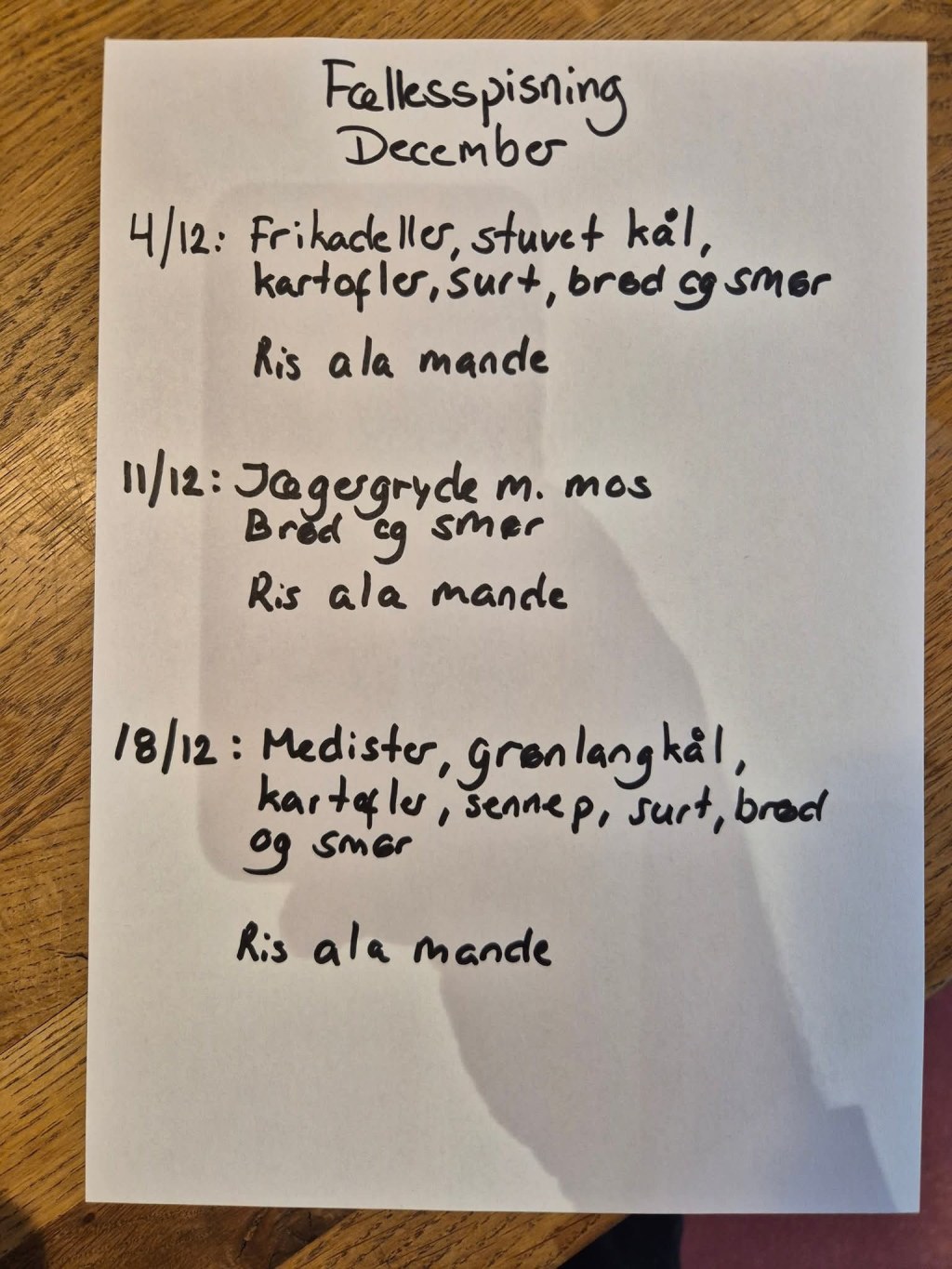 Først og fremmest er menuerne til de allersidste fællesspisninger vi holder, klar til jer.