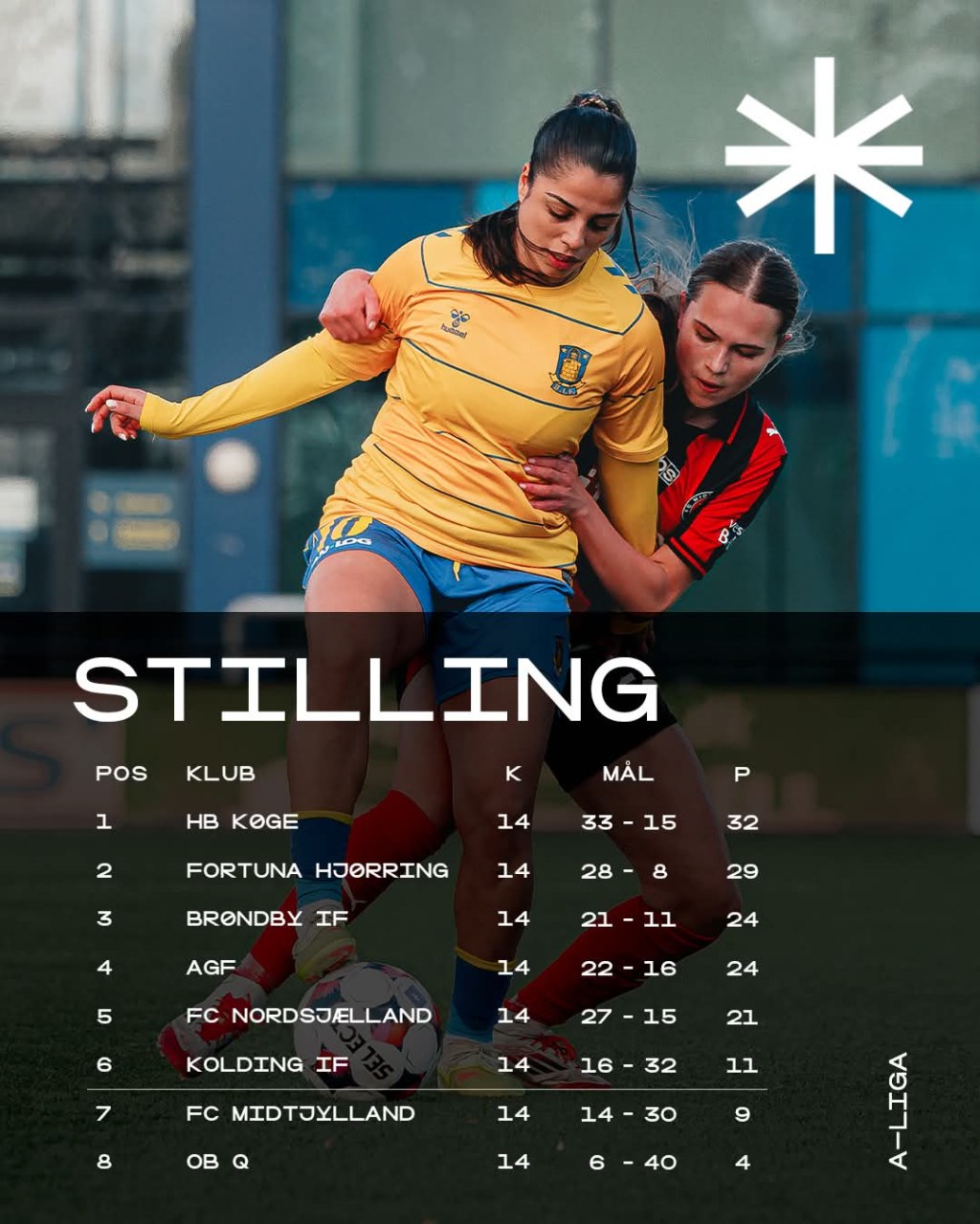 HB Køge går ind i mesterskabsspillet med et forspring på tre point, mens FC Midtjylland og OB Q må en tur ned i kvalifikationsspillet 👍